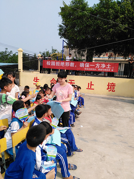 4月14日,钦南区防范办结合钦南区欢度2018年“壮族三月三”关爱少数民族留守儿童城乡手拉手活动,深入黄屋屯镇金竹小学开展“校园拒绝邪教·确保一方净土”主题宣传活动。在各种文艺表演、唱山歌、有奖知识问答、游园活动等形式多样把宣传活动推向高潮。