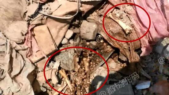 云南广播电视台“YNTV2都市条形码”微信公号5月10日消息,图片上的这些肉,是有人从垃圾填埋场里三、四米的深坑里刨出来的,腐烂的鸡脚、鸡翅、牛肉、散发着腐臭味,这些肉从哪儿来,将到哪去?