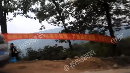 4月30日,记者再次来到了填埋场,此时在填埋场周围停放了几辆警车,现场拉起了“打击走私肉,打击盗挖盗掘”的标语。