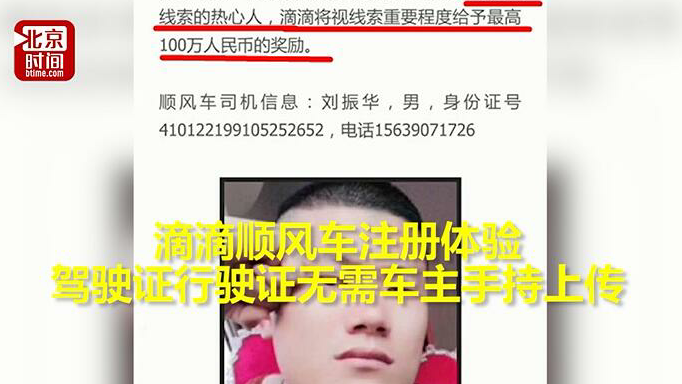 5月10日,滴滴公司连续发布声明表示道歉,并悬赏百万征集嫌疑人线索。