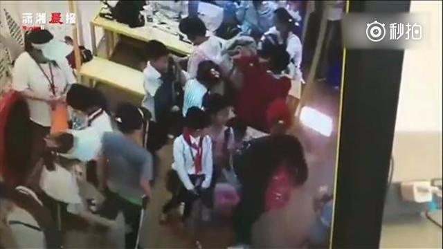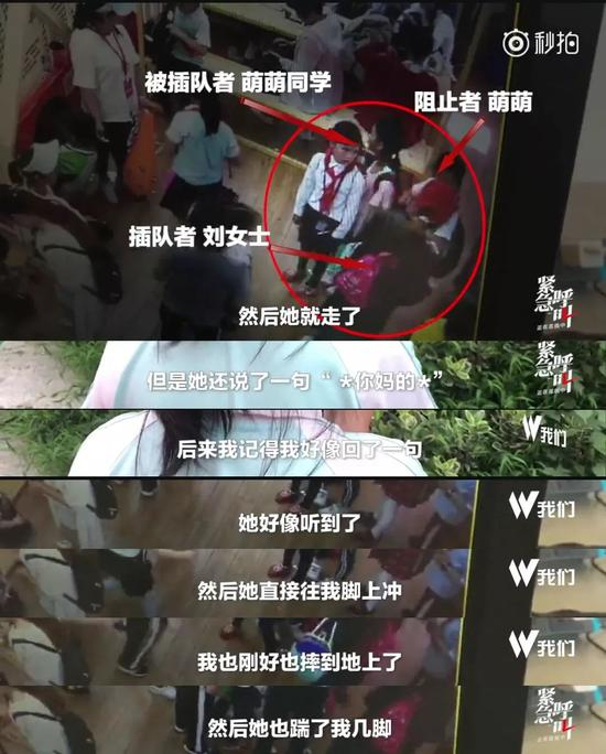 当天的监控视频显示,女子突然一个健步冲了回来,用手推搡并且疑似用脚踹了几下,萌萌一个趔趄,摔出了队伍外。