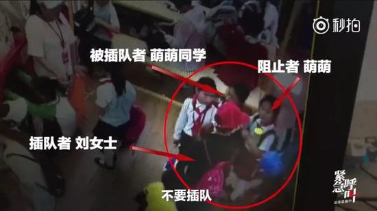 4月19日,在湖南某主题乐园,一位母亲带着孩子想借机插入队列,被9岁女孩萌萌阻止。