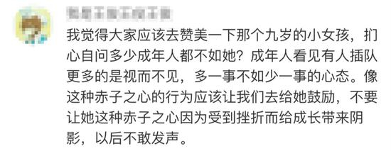 大部分网友对小女孩的正义感表达了赞扬和肯定:扪心自问,有多少成年人不如她?