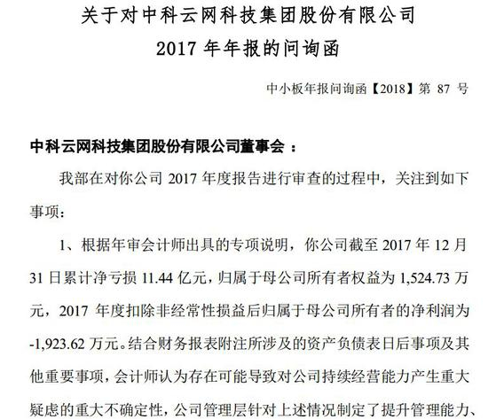 难以解决的债务问题,拖延许久的管理层权斗,融资能力的弱化,导致上市公司气息奄奄。2017年,*ST云网巨亏11.44亿元,因连续两年亏损面临退市风险警示。