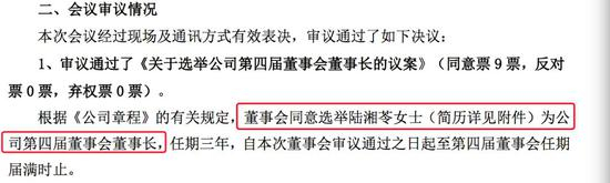 在3月份的临时股东大会上,陆湘苓得到投票股东整体超过90%的支持,但仅从中小投资者处获得略超40%的支持,陆湘苓的上任显然更多是缘于大股东方面支持。
