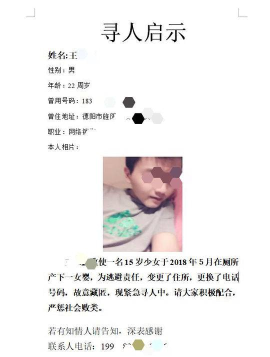 16岁女孩生子 舅舅贴出“寻人启事”找孩子生父