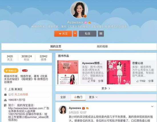 情感博主Ayawawa(杨冰阳)昨天在网上成了千夫所指。