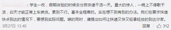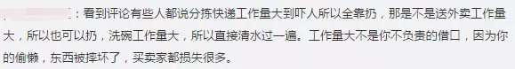 在网友评论中,还有一些快递员自称承认在分拣时确实“用力过猛”,但表示事出有因,工作量太大导致只能以“扔”来获取最快的效率。