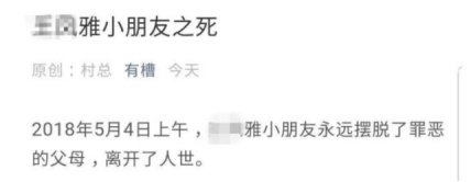 事情始于一篇在网上流传甚广的自媒体文章,文章质疑河南省太康县一对夫妻疑利用重病幼女小雅,骗取网友15万元捐款后,不带女儿去治疗,却把钱用在治疗儿子的疾病上,最终致女儿死亡。