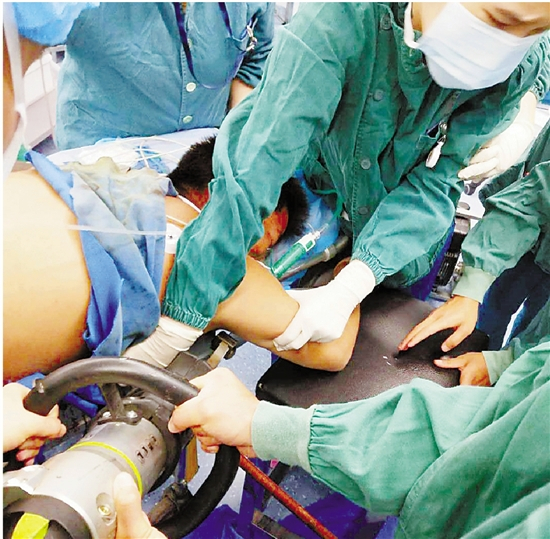 “我们从两侧沿着钢筋慢慢往孙师傅身体里深入,将孙师傅体内和钢筋紧挨着的血肉组织慢慢和钢筋分离出来。最后,我们基本上将他身体里的皮肉和钢筋完全分开了,好像中空了一样,这才缓缓将钢筋从孙师傅体内抽出来。”