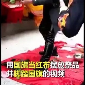男子用国旗摆祭品并踩踏 媒体:国家象征岂容玷污