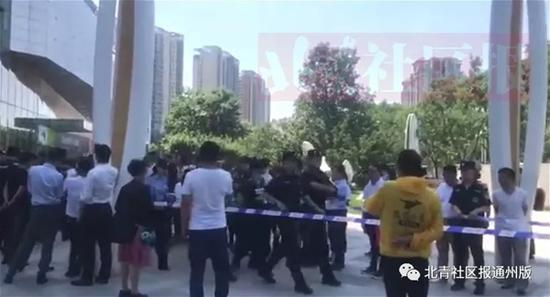 北京通州警方万达写字楼抓超百人 特警荷枪实弹