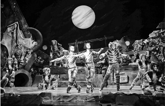 这部音乐剧里,你可以看到不同毛色、不同品种的“猫咪”。一只小白猫跳到舞台中间伴随着音乐,伸出脚做了个“喵式”招牌挠痒痒的动作——这些“猫”演得太像,总是让人入戏太深。