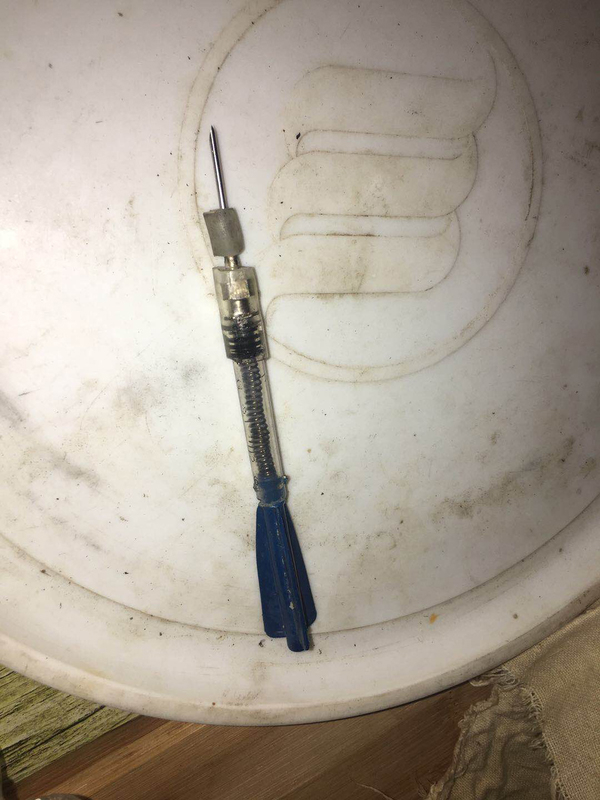 老宋告诉记者,飞镖上确实有毒,但是医院目前暂时还化验不出来,到底是何种毒素。在老宋的手机里,保留有射中小峰的毒飞镖照片,这只飞镖大概长度大约十多厘米,就像一直小注射器模样。