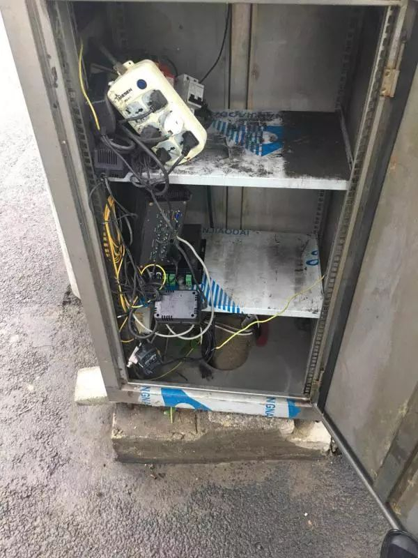 长先生称在退水后事故现场红绿灯附近发现一处设备,并认为可能是此次漏电的原因。他提供的图片显示,设备内有一个六孔插线板,以及各种电源线,其中插线板上有明显的淤泥痕迹。