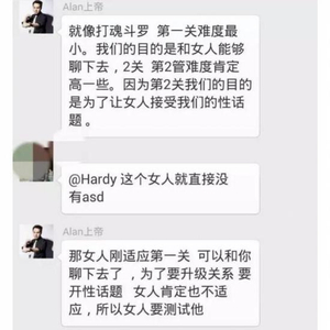 回想起学习PUA的经历,阿民称接触的女生多了,自己的思维也在根本上发生了变化。“我约会的女生不算多,但在社交软件上聊过天的也有一两百人了,还有当了妈妈的人。”阿民认为,自己虽然在PUA中“获利”,但他还是不能接受很多不尊重女性的行为。“比如未经女孩同意就发人家的私密照,或者把这些内容做成宣传广告,传播色情信息。当下PUA学员的层次、思维和能力都参差不齐,所以有人认为成功搭讪是很厉害的事,有的人觉得也就这样吧。”阿民说。