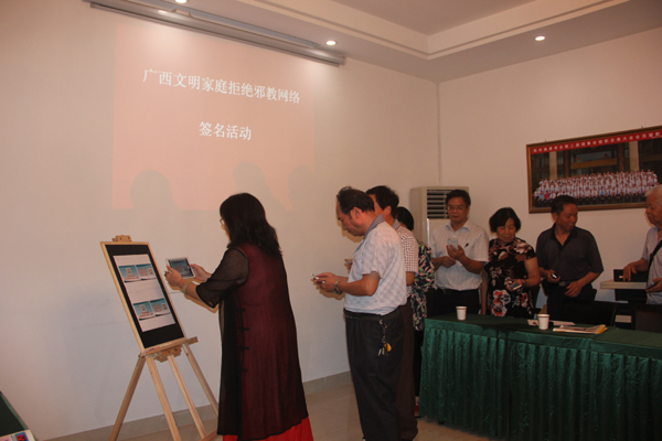 诗人们参与 “广西文明家庭拒绝邪教网络签名”活动。
