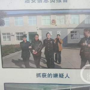 罗山县周党镇派出所门口的宣传栏上说“飞天大盗”最先从周党走出。摄影/记者牛泰