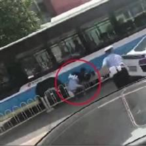 一位现场目击者说,事情发生在大悦城路口,“交警在路口查违章,对那个司机说‘停下车,停下车’,但奥迪车还是冲出去了,警察就追着敲窗。一个交警被撞倒在地,另外一个骑车的路人也被撞到公交车下面”。