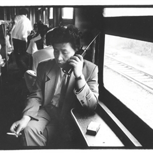 1994年,从沈阳开往大连的火车上,卧铺车厢里打大哥大的旅客。 王福春/视觉中国