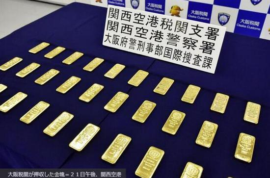 大阪海关的工作人员在检查这一行人的随身物品时发现被藏匿的金砖。海关最终从他们身上缴获到33块金砖,每块重量为1公斤。