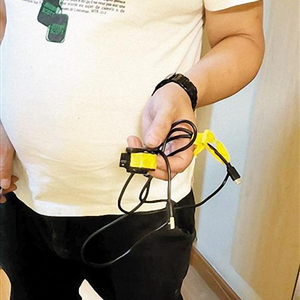 通过许先生用手机拍的照片以及视频,重庆晨报记者发现,这个小型摄像头是通过胶布固定在通风口的,后面还连着数据线。许先生说,摄像头数据线连着一个电池,应该是供摄像头长时间工作用的。