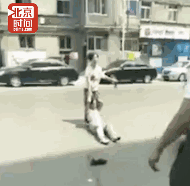 从目击者拍摄的视频可见,该女子大约三十岁左右,当街拽着自己母亲的头发在地上拖行,并对其进行殴打。