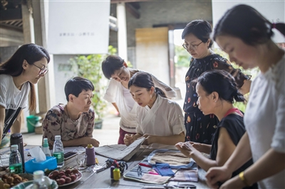 林伟豪介绍,当年,深井村隶属于新造公社时,家家户户懂绣花,常接下小工厂的绣花配件回家加工,后来更发展出广绣和绒绣的传承人。时代变迁,村民放下手中的绣花针外出谋生,手工艺逐渐失传。如今,林伟豪和合伙人利用半年时间改祠堂为学堂,开展包括针线包课、刺子绣课、绒线钩针课等,希望打造深井村手工艺教育基地。