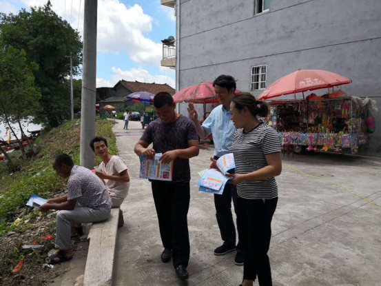 (老百姓穿上反邪教围裙领反邪教宣传单)