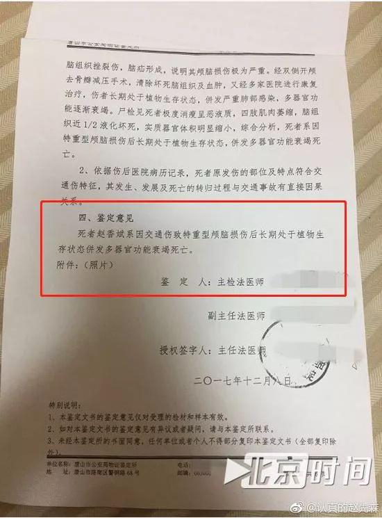 2015年,赵香斌被黄淑芬开车撞伤,导致颅脑损伤,于2017年12月1日去世,两份尸检报告均证明赵香斌死亡与交通事故存在关系。