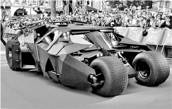 在蝙蝠侠追击大反派“小丑”的一场戏中,他驾驶着这辆蝙蝠飞车沿途一路追赶,不时使用车内的射击装置,抵挡“小丑”猛烈的还击。