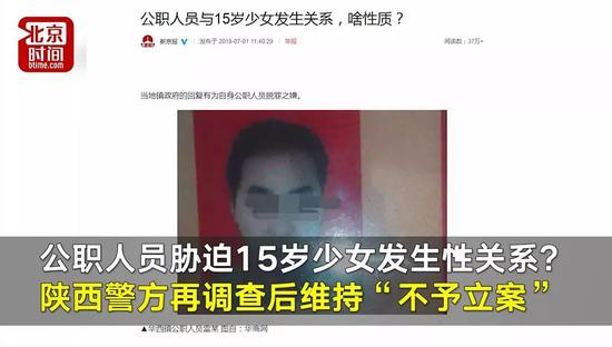 原标题:“公职人员胁迫15岁少女发生性关系”? 陕西警方再调查后维持原决定“不予立案”