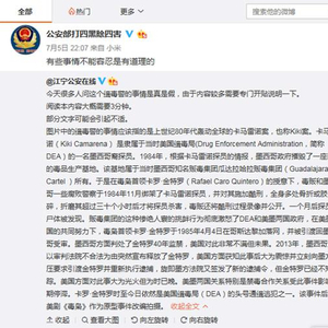 图片中的缉毒警的事情应该指的是上世纪80年代轰动全球的卡马雷诺案,也称Kiki案。卡马雷诺(Kiki Camarena)是隶属于当时美国缉毒局的一名墨西哥裔探员。1984年,根据卡马雷诺探员的情报,墨西哥政府摧毁了一座巨大的毒品生产基地。该基地属于当时墨西哥知名贩毒集团瓜达拉哈拉贩毒集团所有。