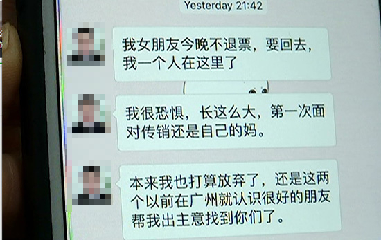 小敬:我很恐惧,长这么大,第一次面对传销,还是自己的妈,权衡利弊得失,我选择放弃,但是真心谢谢你来关注,帮助我,还是害怕,不敢再靠近他们一点点,我也不敢再面对他们那些人了。