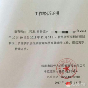 张小姐介绍,自己之前曾在深圳市规划和国土资源委员会光明管理局(以下简称光明管理局)工作,因为这份工作的合同是与深圳市深劳人力资源开发有限公司签订的,签订合同时该公司只分辅助类、工勤类、技术类岗位。因此,在资格初审现场,她提交的这段工作经历的证明材料,写的是“从事辅助类工作”。