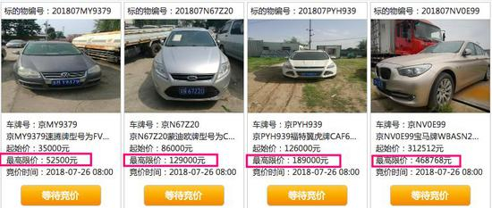 这次一共有40辆车上拍,7月26日早上8点开始拍卖。