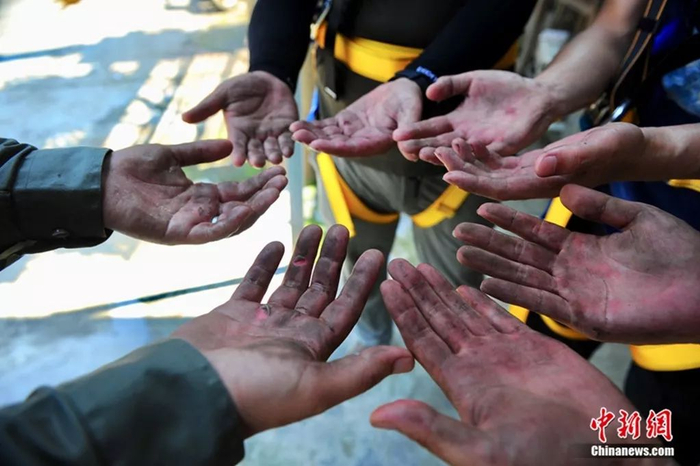 尽管戴着手套,巡检人员的双手连磨带烫,已经破了皮,还磨出了水泡。