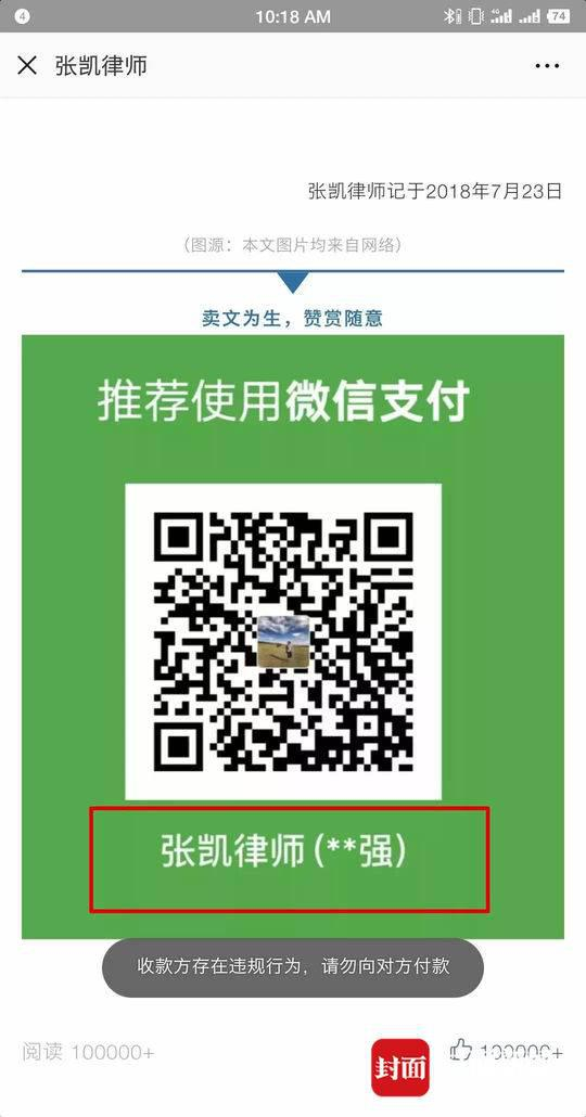 近日,社交媒体上被一篇名为《张凯律师|都在一条船上》文章刷屏,作者张凯因换多个赞赏码打赏被众多网友质疑。
