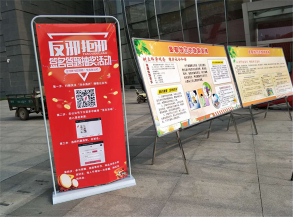 在活动现场中,工作人员放置了反邪教宣传展板,悬挂了反邪教宣传标语横幅,此次结活动共计发放反邪教宣传折页2000页、手册1500本和宣传品1500份。