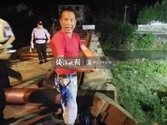 人群慢慢散去,钱报记者在离廊桥南侧不远的地方,看到了一个身影。他叫方樟德,是琅玕村民。老方穿着一件红色T恤,一条牛仔短裤,皮肤黝黑,双眼通红。