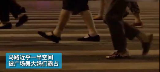 视频中大妈们摆出了几个方阵,占据了三个拐角跳舞,霸占了近乎一半的马路空间,其中可以明显看到占用了人行道。