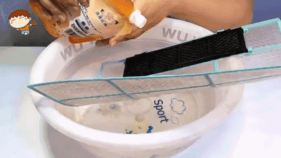 第二步:温水打湿后,可用中性洗衣液清洗。清洗时最好不要用刷子刷过滤网,以免把网眼刷大。