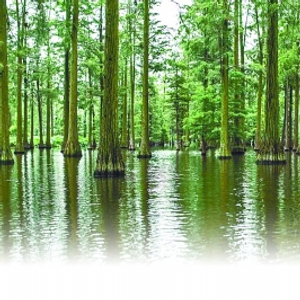 涨渡湖中,约800株池杉“破水而出”。水中有树,树上有鸟,湖中有鱼,是涨渡湖种植池杉区域特有的迷人风景,“水上森林”是人们给予这片区域的美称。