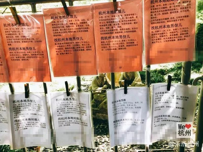 王阿姨这里的征婚信息,“杭州本地姑娘儿,找杭州本地男伢儿”用的是红底,“杭州本地男伢儿,找杭州本地姑娘儿”用的白底。