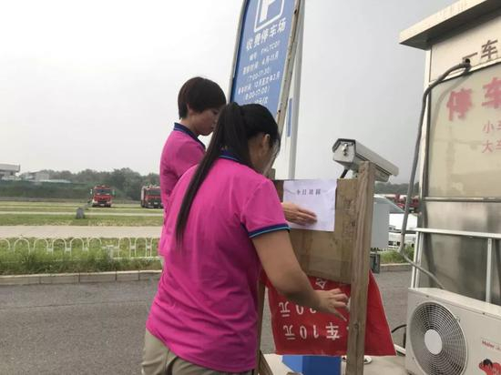 记者在凤凰岭景区入口处看到,原本贴在收费岗亭的那张落款为“2018年8月”的“通知”被两位景区工作人员更换掉,落款时间为“2018年7月”。有30多名消防工作人员推着消防装备进入景区,但对方表示,不便透漏具体工作任务。
