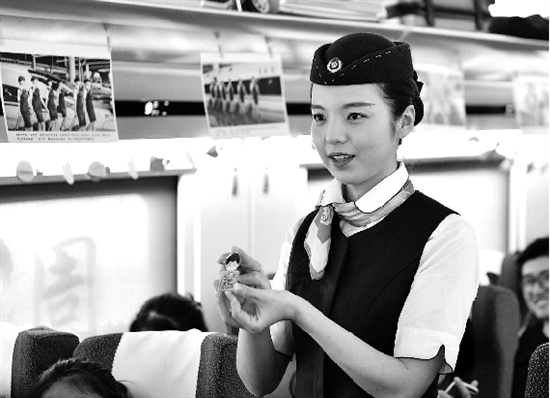 为了让大家了解“西子号”的历史,铁路工作人员准备了一场“历年乘务员制服秀”。