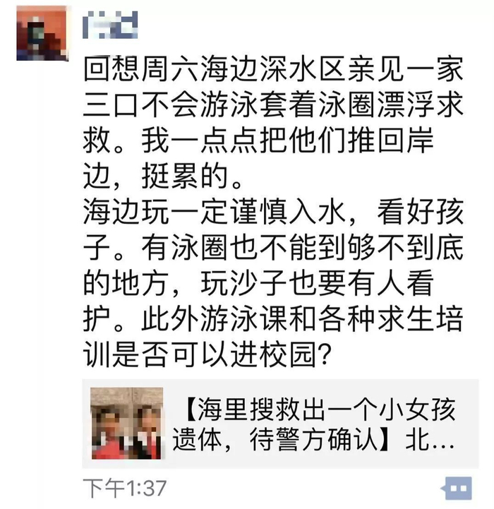 这场悲剧让人痛心的同时,也让人反思。其中,有家长在朋友圈分享自己的经历和看法,呼吁加强家长、儿童安全意识教育。