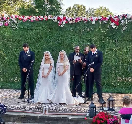 据英国《每日邮报》8月5日报道,周六,在美国俄亥俄州特温斯堡举行的双胞胎节上,32岁的双胞胎姐妹布列塔尼·迪恩(Brittany Deane)和布莱安娜·迪恩(Briana Deane)同时与34岁的双胞胎兄弟乔什·斯雷耶斯(Josh Slayers)和杰瑞米·斯雷耶斯(Jeremy Slayers)喜结连理。这对新人的婚礼,也是由双胞胎牧师主持的,婚礼的主题为“二重奏”。