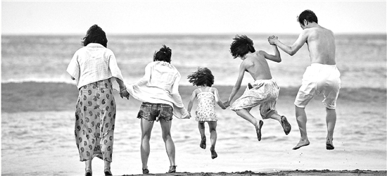 只是笑声中藏着悲剧结局,阳光下的悲伤隐隐袭来。海边度假,奶奶在沙滩上,看着信代一脸幸福地望着“丈夫”、“妹妹”、“儿子”、“女儿”在海边开心玩耍时,喃喃自语“这是不会长久的”。