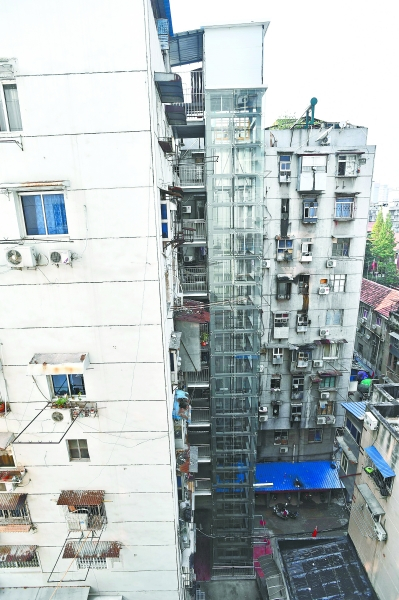 昨天,江汉区前进四路80号居民楼加装的10层高的电梯已经安装完成,正在调试、试运行,部分居民开始体验试乘。这座电梯由该楼136户居民集资85万元建成,高39米,是目前武汉市老旧居民楼加装电梯的案例中,最高、轿厢尺寸最大、首例能进出担架的电梯。
